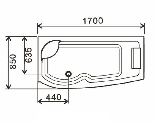 Kích thước bồn: 1700 x 850 x 2200 mm, phù hợp cho nhiều không gian phòng tắm hiện đại từ căn hộ chung cư đến biệt thự cao cấp.